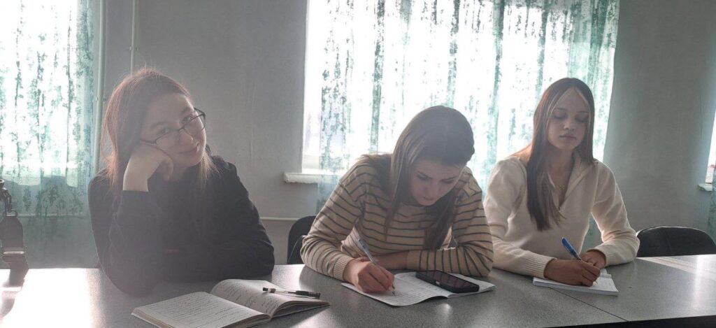 В аудитории царила творческая атмосфера: будущие педагоги отрабатывали правильную посадку , тренировали движения руки и выводили элементы букв, совершенствуя свой почерк
