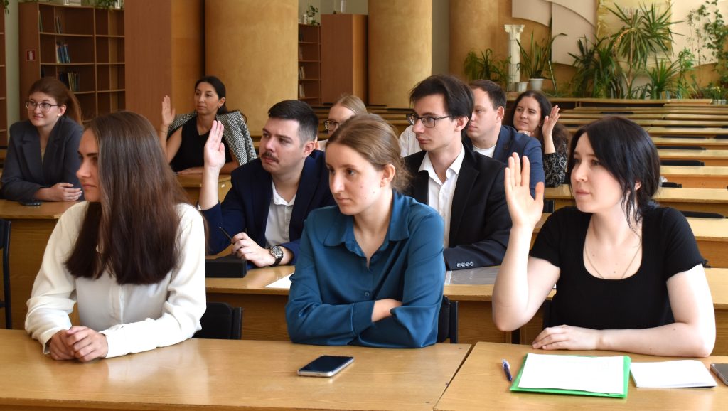 Также состоялись выборы актива Студенческого научного общества. На должность председателя Студенческого научного общества был рекомендован студент второго курса направления подготовки «Педагогическое образование (с двумя профилями подготовки)», профиль «История. Обществознание» Института истории, международных отношений и социально-политических наук Сергей Припутнев, на должность заместителя председателя – студент второго курса направления подготовки «Филология», профиль «Отечественная филология. Русский язык и литература» Института филологии и социальных коммуникаций Юлия Бобрицкая, а в качестве секретаря – студент четвертого курса направления подготовки «Психология», профиль «Практическая психология» Института педагогики и психологии Яна Гончарова. По результатам открытого голосования данный состав актива также был утвержден единогласно.