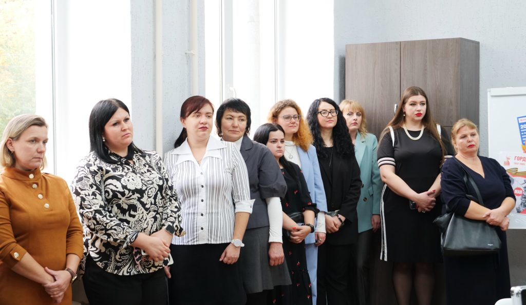 Заведующий кафедрой теории и практики перевода Лариса Харченко поблагодарила Павла Аристиевича и Жанну Викторовну за помощь в создании кабинета и стремление сделать процесс преподавания и обучения продуктивным.
