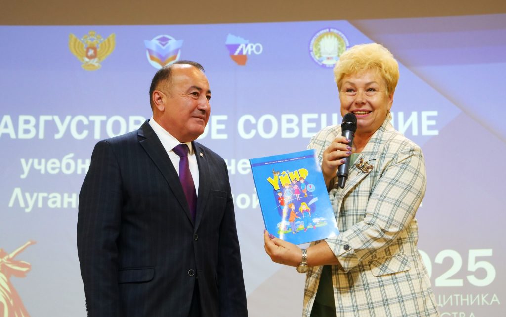 В рамках Августовского совещания учебно-педагогического округа Луганской Народной Республики Сенатор Российской Федерации от ЛНР Ольга Бас передала в музей учебник калмыцкого языка. Ценный подарок принял председатель Попечительского совета вуза, депутат Народного Совета ЛГПУ Павел Пилавов.
