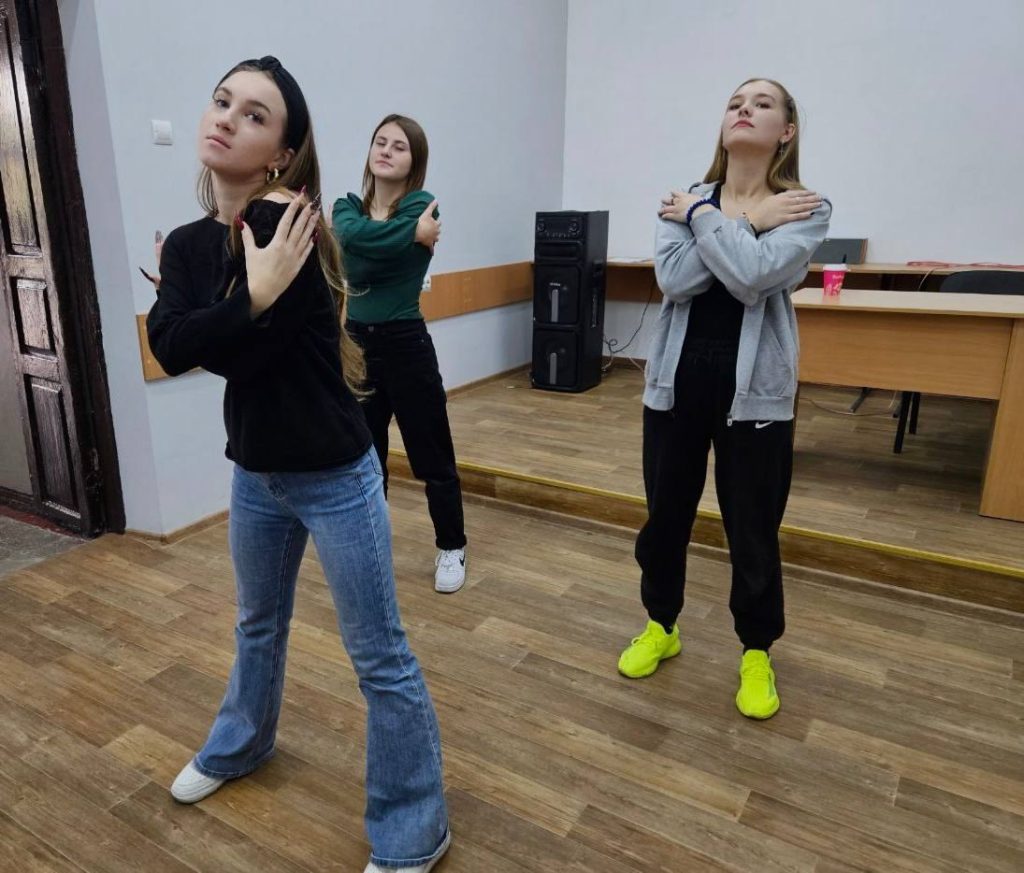 Студенты 1 курса направления подготовки «Педагогическое образование», профиля «Начальное образование», вместе с главой кульмассового сектора студенческого самоуправления Кирой Коробкой, погрузились в репетицию номера, который обещает быть по-настоящему «чувственным и трогательным».