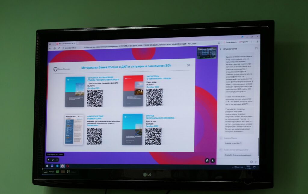 Представители Института физико-математического образования, информационных и обслуживающих технологий Луганского государственного педагогического университета 11 ноября приняли участие в Южной научно-практической конференции «Современные вызовы и перспективы развития экономики России».