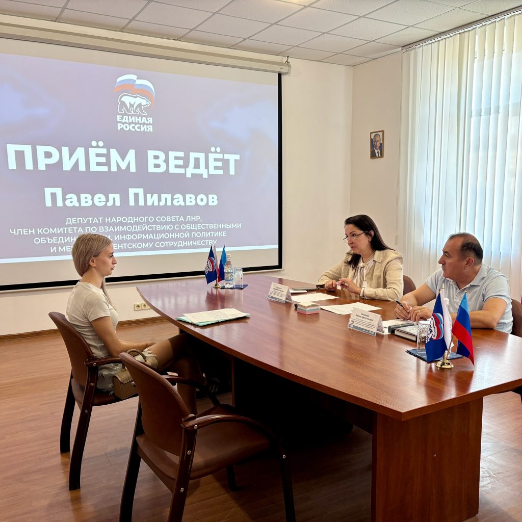 Сегодня совместно с коллегой, депутатом Народного Совета ЛНР Жанной Марфиной провели прием граждан в Региональной общественной приемной Председателя партии «Единая Россия» Д.А. Медведева в ЛНР.