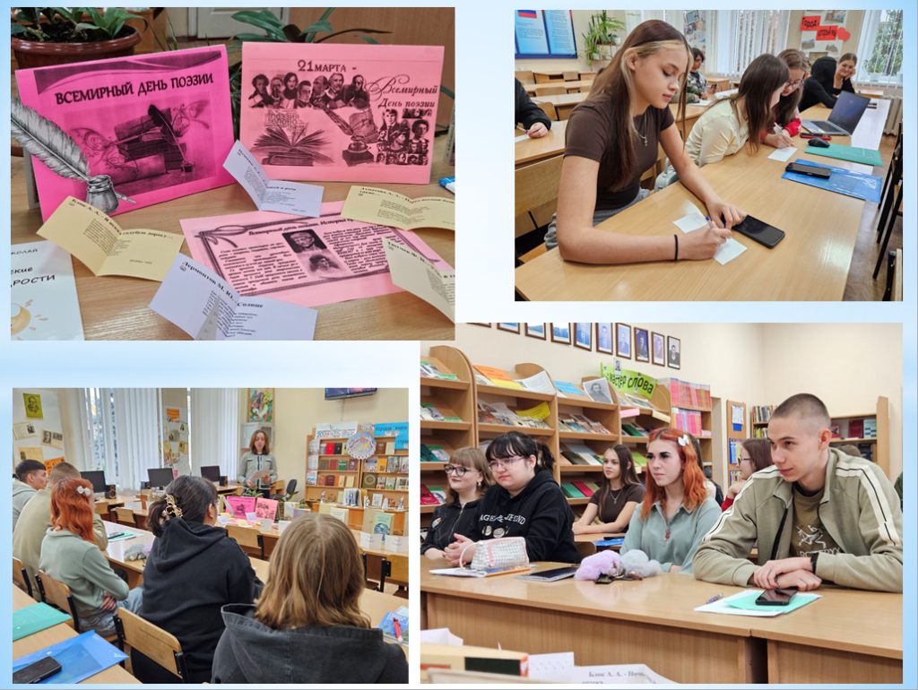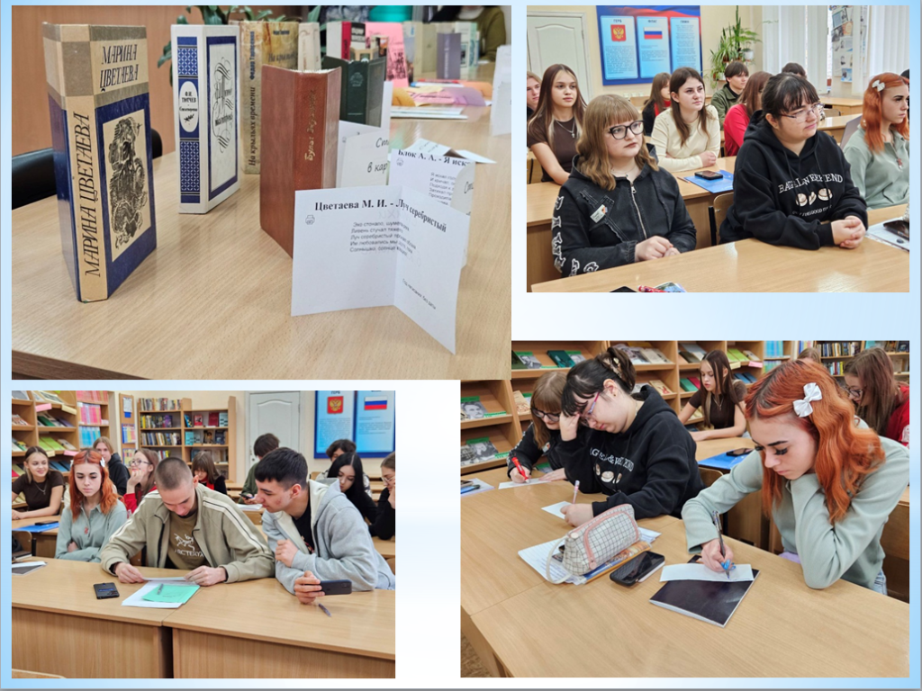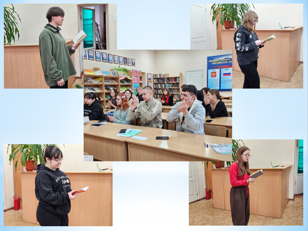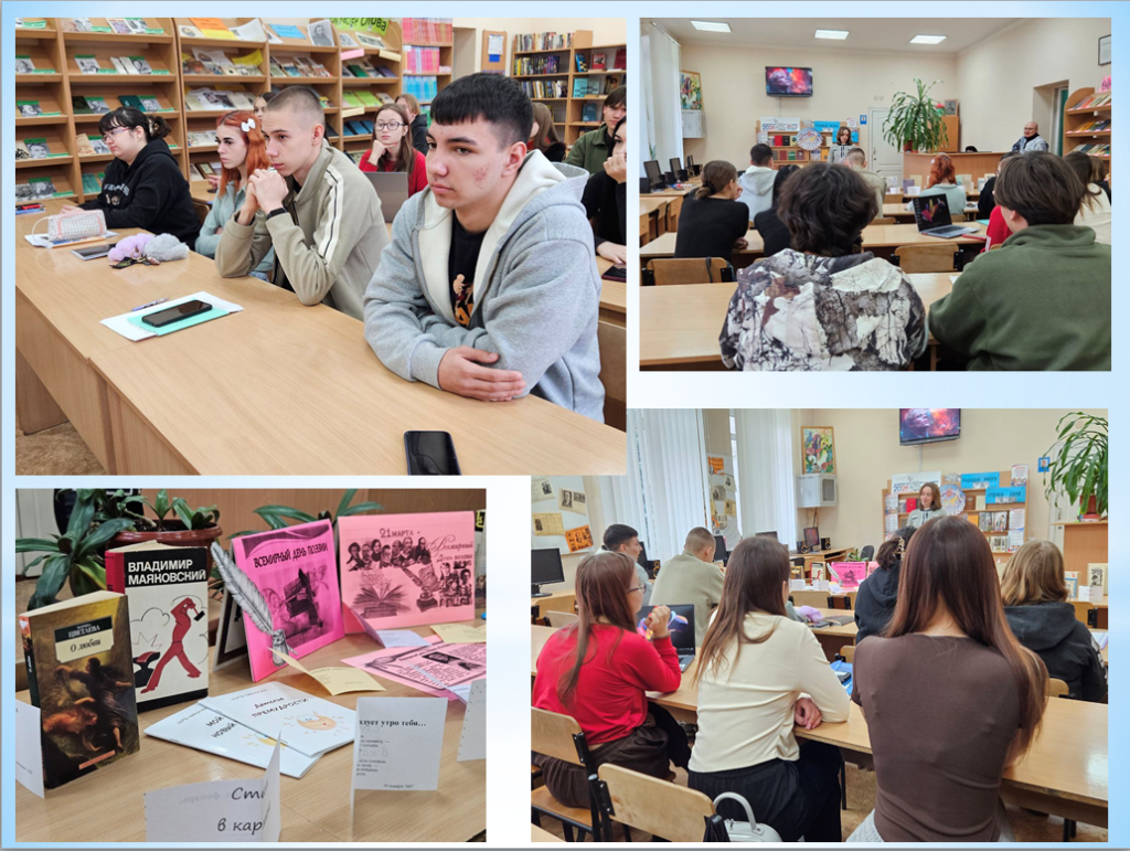 В самом тихом месте нашего учебного заведения стало чуточку громче. В библиотеке Старобельского факультета (филиала) ФГБОУ ВО «ЛГПУ» необычно, творчески и вдохновенно прошла интерактивная встреча, приуроченная к Всемирному дню поэзии, который ежегодно отмечается 21 марта. Мероприятие под названием «Слова, что рисуют картины» было призвано показать, что поэзия – это не только пыльные томики из школьной программы, но и живой ритм, способный вызвать искренние эмоции.